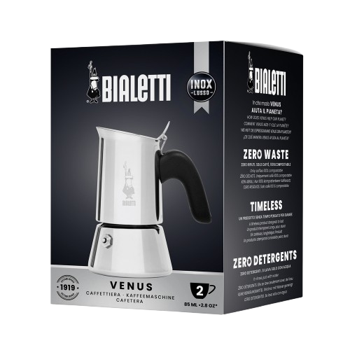 Opływowy kształt i oryginalny design sprawiają, że Bialetti Venus może być świetną ozdobą każdej kuchni. Rewelacyjny wygląd łączy się tu z funkcjonalnością. Sprzęt wykonany jest z polerowanej stali nierdzewnej oraz posiada rączkę z tworzywa sztucznego w kolorze czarnym. Stal nierdzewna wpływa na smak kawy w mniejszym stopniu niż aluminium, a ergonomiczny kształt uchwytu zapewnia wygodne nalewanie przygotowanego espresso.